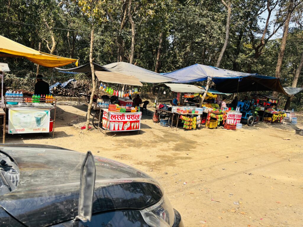 - Small stalls lining the road, selling prasad, flowers, incense, and religious souvenirs.